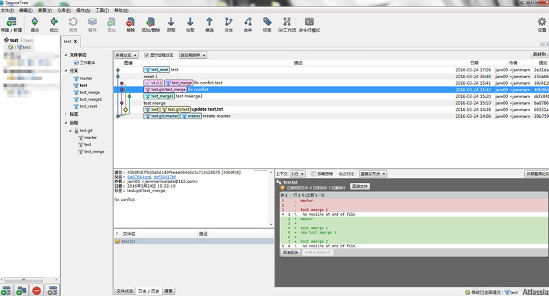 Git 版本管理 技术 Git 仓库的创建和常用命令的使用 2017-10-19 18:16 2096 更新于 2017-10-19 18:16 Git是一款免费、开源的分布式版本控制系统 更多理论知识请查看官方中文文档 https://git-scm.com/book/zh/v2/ 说明: git> 表示该语句是运行在git 的命令行终端 ## 一、安装 linux:直接 yum install git windows:下载 [Git2.5.2-64](https://download.csdn.net/download/jam00/9472306 "Git2.5.2-64"),点击安装 ## 二、创建本地仓库 打开 git-bash,f:\test 目录可以是空目录也可以是已存在项目的目录 ``` git> cd f:\test git> git init ``` 配置全局参数(将 name 和 email@email.com 改成你自己的名称和emall) ``` git> git config --global user.name "name" git> git config --global user.email "email@example.com" ``` 生成密钥和公钥(等会要用) ``` git> ssh-keygen -t rsa -C "email@example.com" ``` 一直回车,若你不想在使用密钥时输入口令,将其留空即可 会在用户主目录下(C:\Users\用户\.ssh)生成一个 .ssh 的目录, 此时,你就可以使用git了,更改,提交等等操作,但是这些操作都是在本地的 ## 三、创建远程仓库 远程仓库在linux 下,ip 为 192.168.1.136(linux 虚拟机) 假设已安装了 Git ### 1、创建管理运行git 的用户 ``` adduser git ``` 此时会生成目录 /home/git 若没有请自行创建 这里创建一个叫 test.git 的仓库(一般裸仓库以.git结尾),--bare 为裸仓库,不存放原文文件 ``` cd /home/git git init --bare test.git chown -R git:git /home/git/ ``` 禁止 git 用户 ssh 登录 ``` vim /etc/passwd git:x:505:505::/home/git:/usr/bin/git-shell ``` 保存并退出 ### 2、创建ssh 验证文件 ``` mkdir /home/git/.ssh/ ls -ahl vim /home/git/.ssh/authorized_keys ``` 将刚才生成的公钥(C:\Users\用户\.ssh\id_rsa.pub)里面的内容,复制到authorized_keys,若是以后有其他人加入,就一行一个 你也可以用ftp下载`authorized_keys`文件,修改后再上传上去 此时,远程仓库就创建好了 ## 四、常用命令使用 继续使用刚才打开的 git-bash,现在我们默认是在master分支 ### 1、 添加远程仓库(就是刚才建立的裸仓库) git remote add [远程仓库别名] [远程仓库地址] ``` git> git remote add test.git git@192.168.1.136:/home/git/test.git ``` ### 2、查看远程仓库 -v 显示出远程链接 ``` git> git remote -v test.git git@192.168.1.136:/home/git/test.git (fetch) test.git git@192.168.1.136:/home/git/test.git (push) ``` 查看更多的远程仓库信息 ``` git> git remote show test.git ``` ### 3、远程仓库重命名 git remote rename [旧名] [新名] ``` git> git remote rename test.git newtest.git ``` git remote 查看一下 ### 4、远程仓库移除 ``` git> git remote rm newtest.git ``` 现在你就可以用 test.git 这个别名来做拉取和推送等和远程仓库相关的操作了 在 test 文件夹下 添加一个 test.txt 的文件,并写入一行 ‘master’ ### 5、 提交你的更改 ``` # 缓存更改(可多次执行) git> git add . # 提交更改 -m '描述' ,描述一下这个分支都干了些啥(很有用处) git> git commit -m 'create master' # 推送到远程仓库(这样别人才能看见你的更改,当然他要先拉取一下) # git push [远程仓库别名] [要推送的本地分支名] git> git push test.git master ``` 现在远程仓库就有一个基础版本了,别人加入你的项目时,他只需要 git clone [远程仓库名] 就行了 ### 6、 创建、查看、切换、删除分支 创建一个 test 分支并切换到 test 分支 git checkout -b [新分支名称] ;checkout 是切换,-b 是创建 ``` git> git checkout -b test ``` 也可以使用 branch 创建 ``` git> git branch test1 ``` 查看分支列表 -v 查看每个分支最后一次提交的信息 ``` git> git branch -v master 38b7597 create master * test 69331a3 test1 dcf3841 ``` *代表现在所在的那一个分支 切换分支 ``` git> git checkout test ``` 删除分支 -d 是删除;若是有改动,会删除失败,试试 -D 吧,但不建议这么做 ``` git> git branch -d test1 ``` ### 7、查看更改 改动 test.txt 的内容,添加一行 ‘add test’(在git bash 中可以直接用 vim 操作 test.txt 哦,和linux下操作一样) 看看都改动了哪些文件 ``` git> git status ``` 看看 test.txt 改动的内容 ``` git> git diff test.txt ``` 查看完毕后就可以提交更改了 ### 8、拉取分支 pull 会自动合并 git pull [远程仓库里别名] [分支名称] ``` git> git pull test.git master ``` 若不想直接合并,使用 fetch git fetch [远程仓库里别名] [分支名称] ``` git> git fetch test.git test ``` 它会拉取远程仓库的 test 分支到本地,你可以查看改动后,手动合并 ### 9、合并分支 使用场景: 1、本地仓库有多个个分支,合并到一个分支,推送合并的那个分支到远程仓库即可 2、多个人同时在一个分支下工作,你在此分支上的工作完成后,要先从远程仓库拉取新的改动,合并后再推送到远程仓库 创建两个测试分支 ``` git> git checkout -b test_merge # 在 test.txt 中添加一行 test maerge 1 (记住行号,比如第三行) ,提交更改 git> git add . git> git commit -m 'test merge' # 创建另一个分支 ,并添加一行 ,将上个分支添加的那一行(第三行)更改为 new test maerge 1,并新添一行 test maerge 2 git> git checkout master git> git checkout -b test_merge1 git> git add . git> git commit -m 'test merge1' # 切换到 test_merge 进行合并 git> git checkout test_merge git> git merge test_merge1 ``` 若是合并远程仓库的分支,要先 fetch 更新到本地,再合并,这里演示合并远程的 test 分支 ``` git> git fetch test.git test git> git merge test.git/test ``` 自动合并时报错,有冲突,test.txt 的内容为 ``` master <<<<<<< HEAD test maerge 1 ======= new test maerge 1 test maerge 2 >>>>>>> test_merge1 ``` HEAD 表示当前分支的数据 ======= 到 test_merge1 里面的内容是 