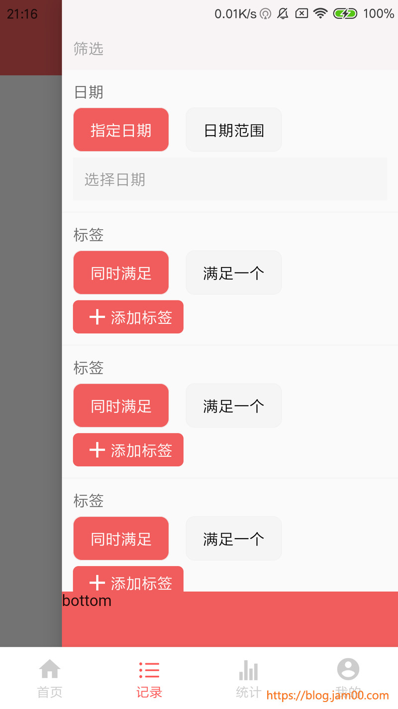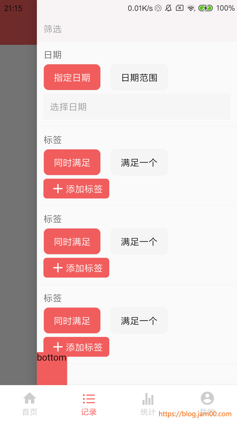 Flutter Android Stack APP 技术 Flutter Stack布局,使用Positioned子组件无法铺满宽度的问题 2020-03-05 21:31 4236 更新于 2020-09-27 15:15 开发侧滑搜索菜单,Drawer 内容代码如下 ``` ConstrainedBox( constraints: BoxConstraints.expand(), child: Stack( fit: StackFit.expand, children: <Widget>[ ListView( children:[ _buildHeader(), _buildTime(), MyWidgets.separator(height: 1,bgColor: StyleColors.bg_grey), _buildTag(), MyWidgets.separator(height: 1,bgColor: StyleColors.bg_grey), _buildTag(), MyWidgets.separator(height: 1,bgColor: StyleColors.bg_grey), _buildTag(), MyWidgets.separator(height: 1,bgColor: StyleColors.bg_grey), _buildTag(), ], ), Positioned( bottom: 0, child: _buildBtn(), ), ], ), ) ``` 界面如下  _buildBtn 内容为 ``` Container( height: 50, // width: double.infinity, decoration: BoxDecoration( color: StyleColors.main_color ), child: Text('bottom'), ); ``` 想bottom铺满底部宽带 但是设置 `width: double.infinity`, 报错:`BoxConstraints forces an infinite width.` 可以将 `Positioned` 替换为 `Align` ``` Align(child: _buildBtn(),alignment: Alignment.bottomCenter,) ``` Container 宽度设置为 `width: double.infinity`, 效果如下